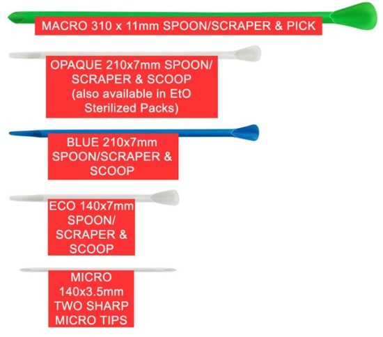 מגוון גדול של ספטולות צורות ומידות, ספטולות חד פעמיות כולל פריט אנטיסטטי.